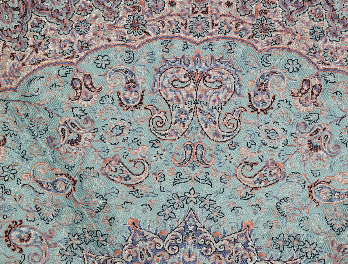 Diese Decke ist keine gewöhnliche Textilie, sondern ein Stück Geschichte. In Persien als „Termeh“ bekannt, basiert diese Webkunst auf jahrhundertealten Traditionen. Anders als bei bedruckten Stoffen werden hier die Muster mit feinsten Fäden gewebt. Die klassischen Paisley-Motive (Boteh) und die architektonischen Ornamente erzählen Geschichten aus 1001 Nacht. Jedes Stück ist das Ergebnis präziser Handwerkskunst.