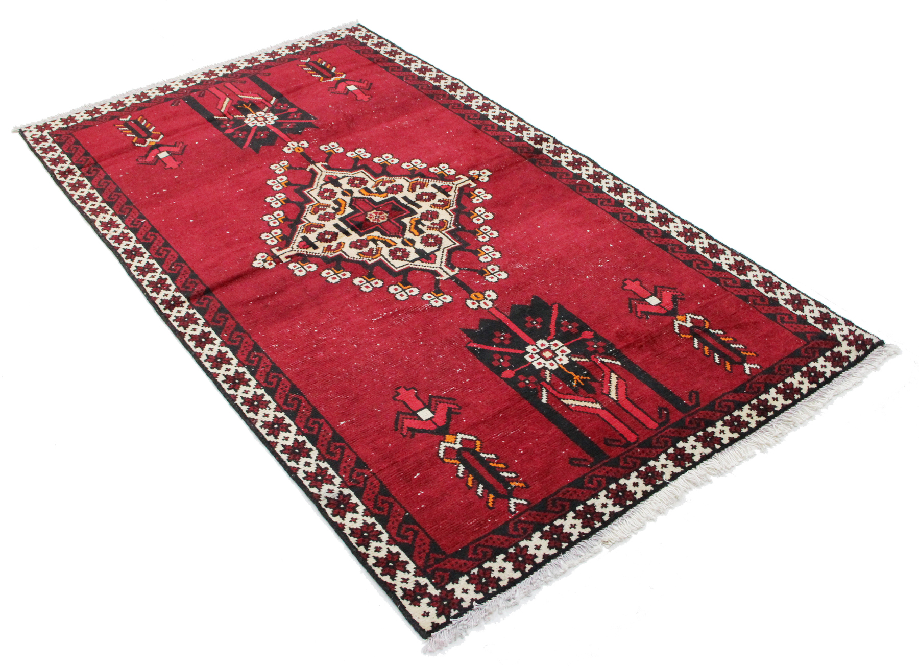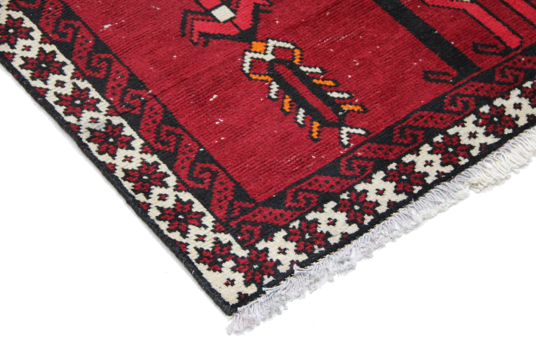 Orientteppich Afghan Belutsch Alt Nr 37| Afghanischer Belutsch Teppich mit leuchtend rotem Hintergrund und klassischen Blumen von Aricarpets Oriental Teppich