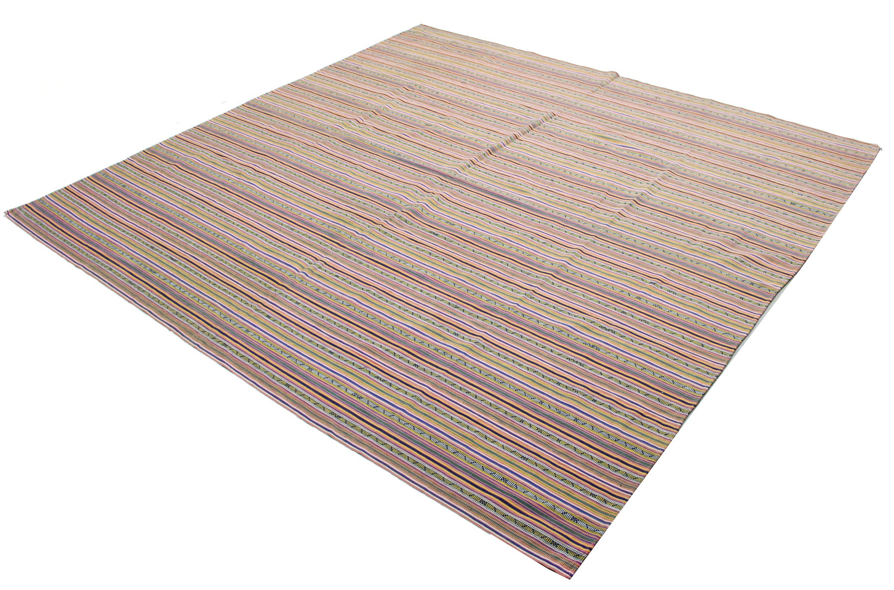 Original Karabagh Alte Kelim Djajim Nr 25061| Bunter Hintergrund mit einer Kombination , passend für moderne Häuser