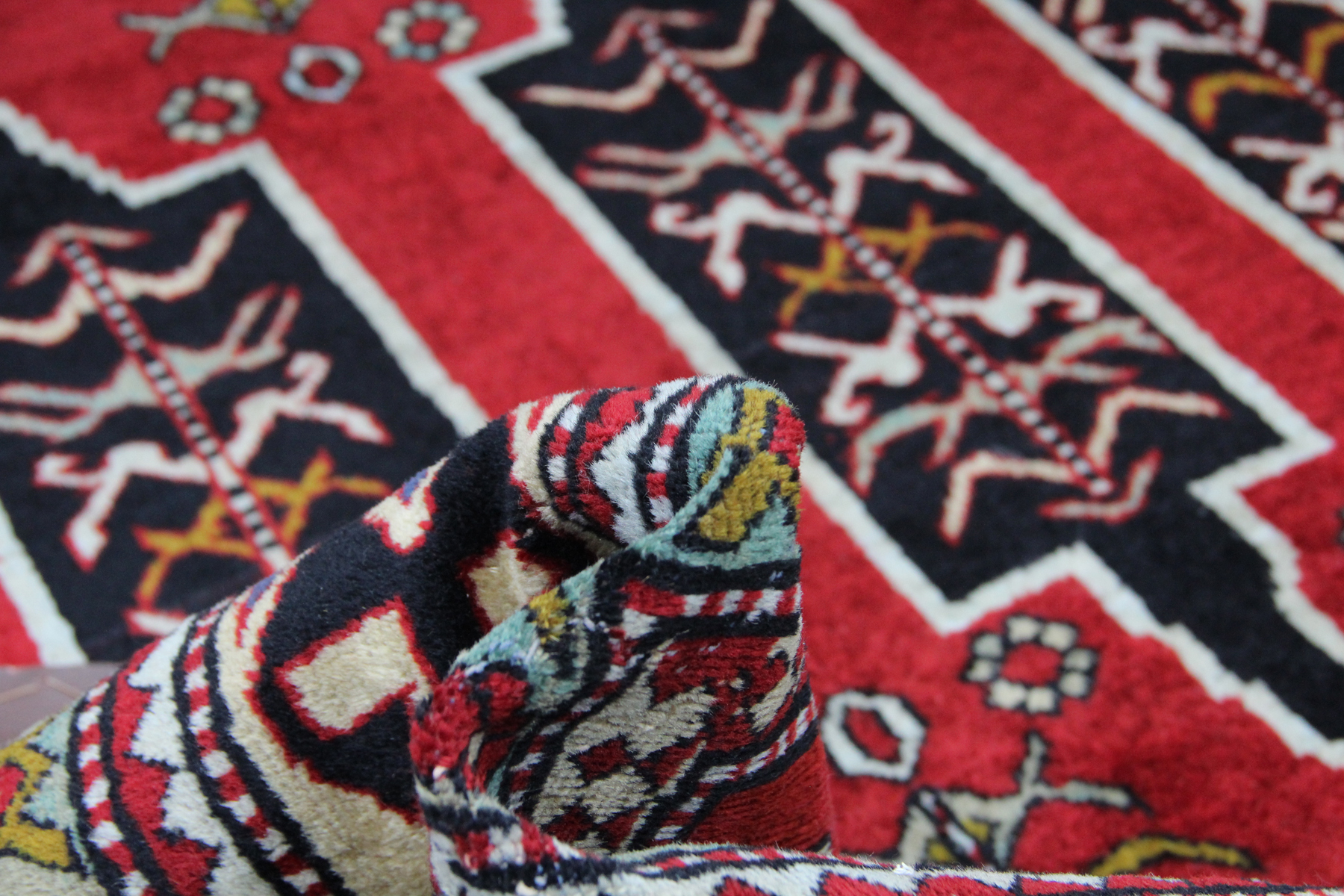 Muster: Shirvan-Teppiche zeichnen sich durch komplizierte, symmetrische Muster mit Medaillons, stilisierten Blüten, Rauten und abstrakten Tiermotiven aus.