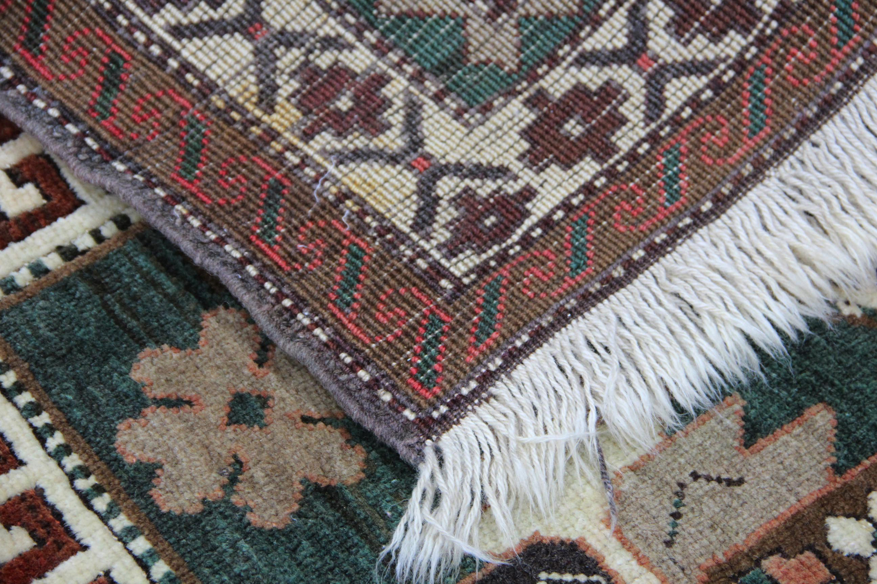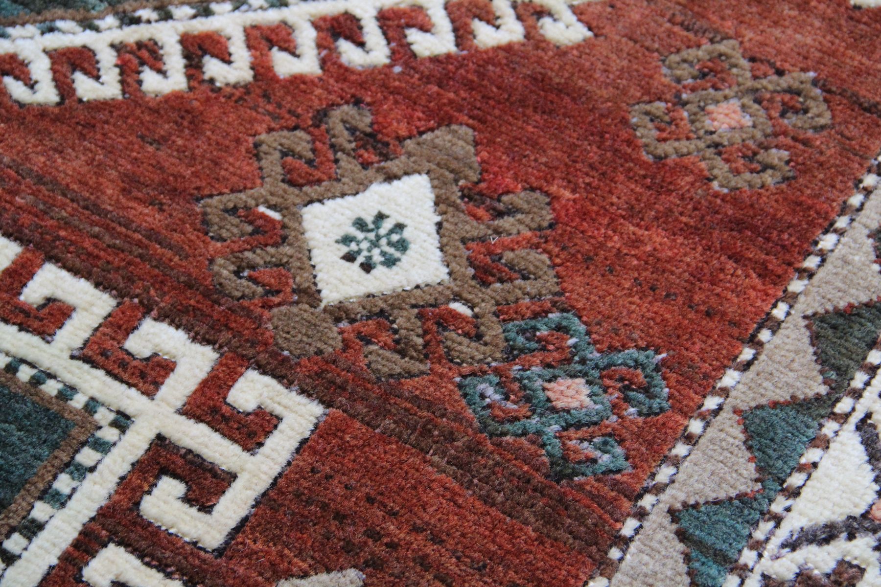 Der antike kaukasische Shirvan-Teppich ist ein hochwertiger, handgeknüpfter Teppich aus der Region Shirvan im östlichen Kaukasus (heutiges Aserbaidschan). Diese Teppiche stammen aus dem 19. und frühen 20. Jahrhundert und sind bekannt für ihre feinen, dichten Knüpfungen, ihre geometrischen Muster und ihre harmonische Farbpalette.