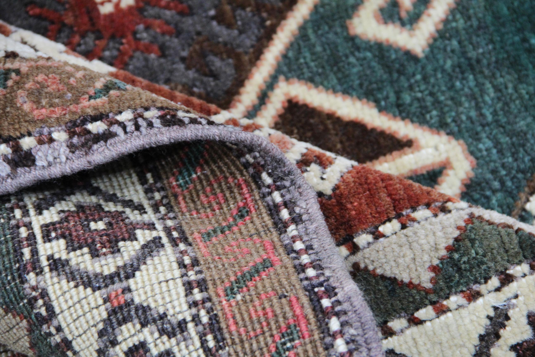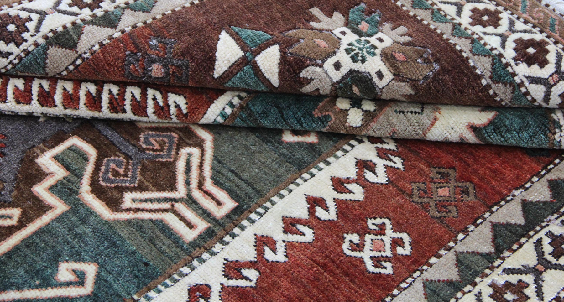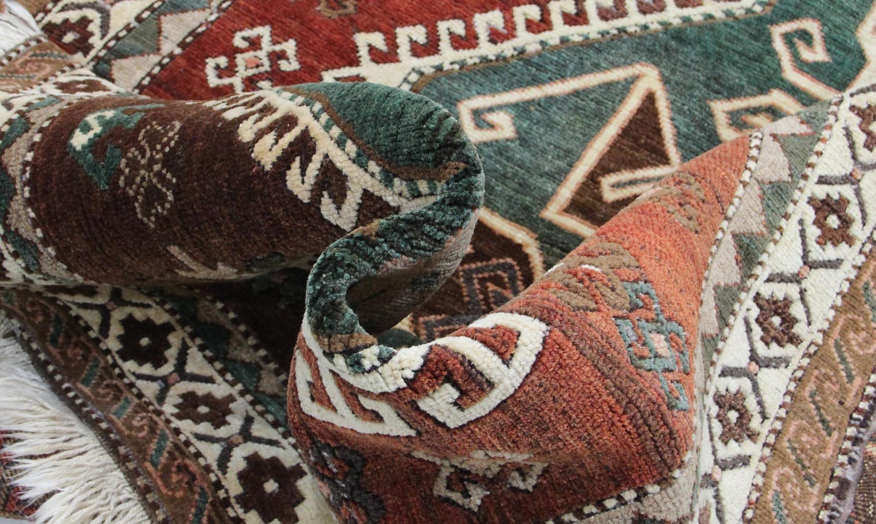 Material: Diese Teppiche bestehen meist aus handgesponnener Wolle auf einer Baumwoll- oder Wollkette, was ihnen eine feine, strapazierfähige Struktur verleiht.