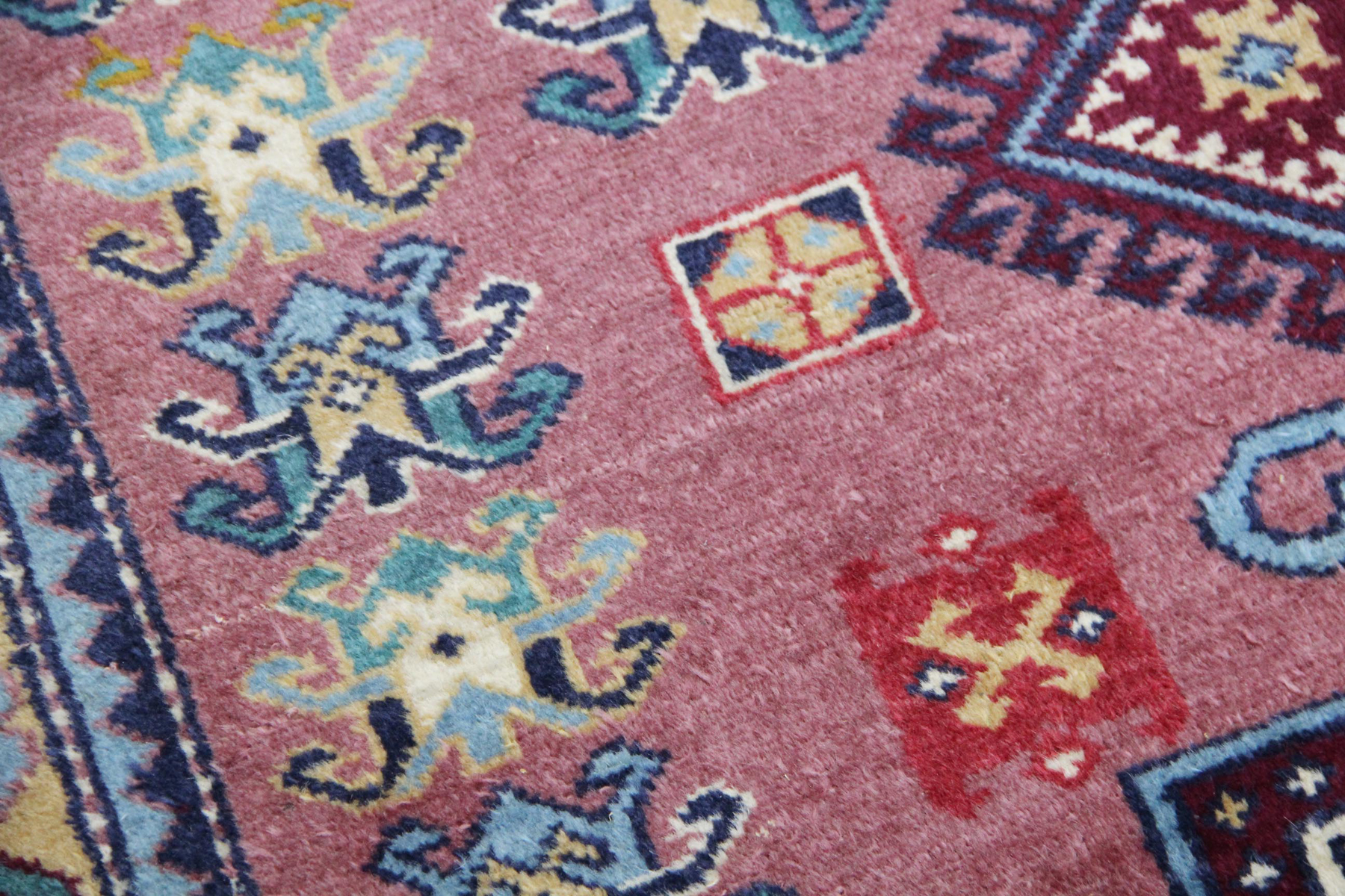 Muster: Shirvan-Teppiche zeichnen sich durch komplizierte, symmetrische Muster mit Medaillons, stilisierten Blüten, Rauten und abstrakten Tiermotiven aus.