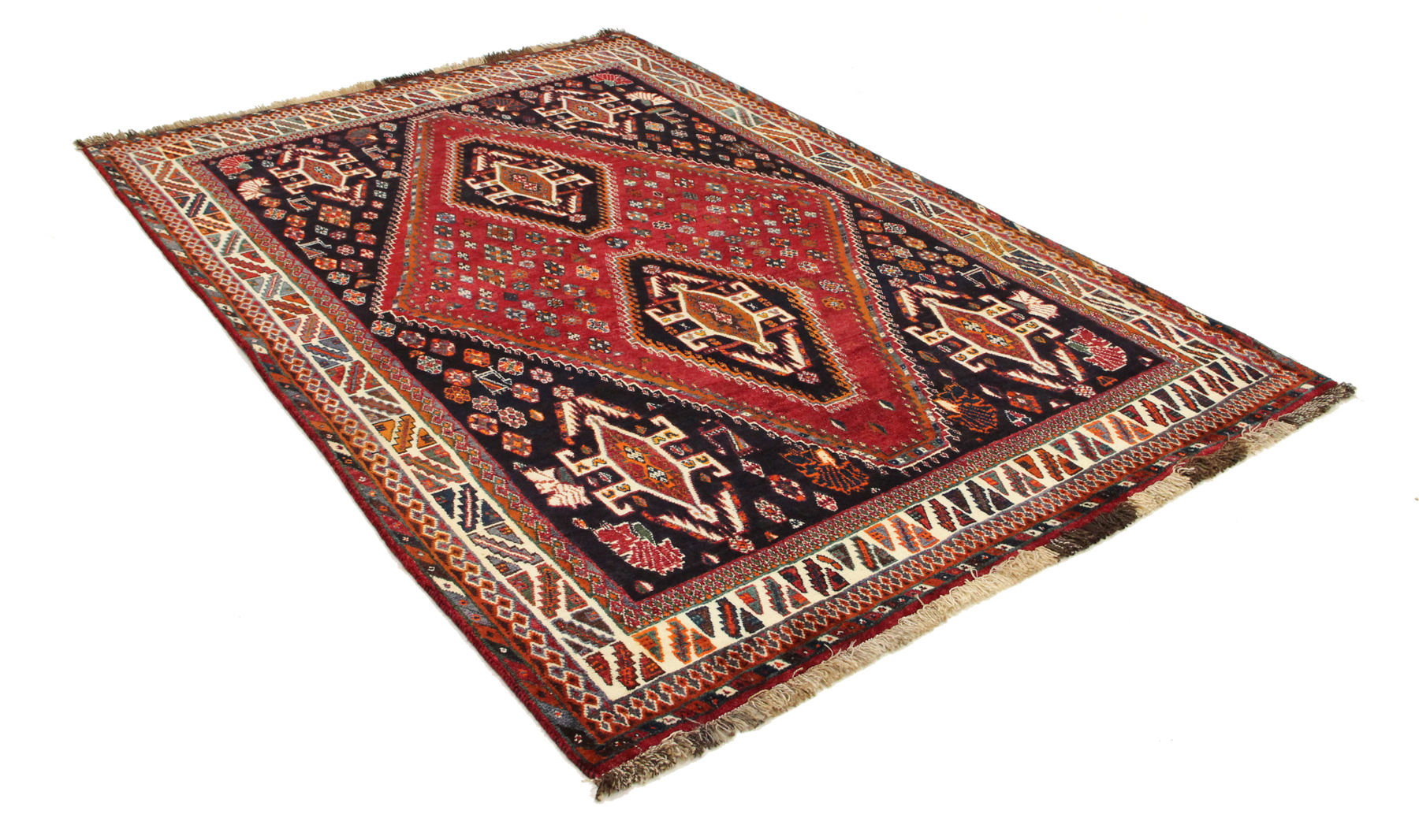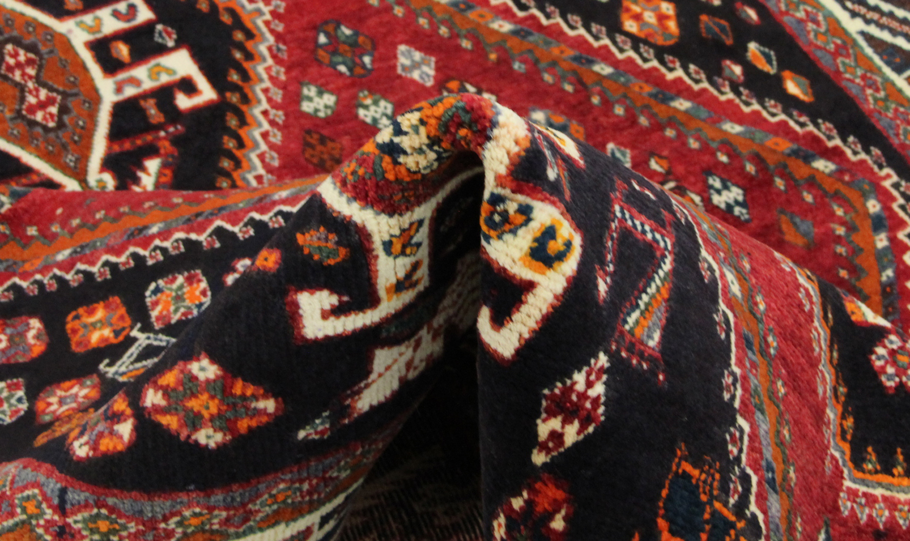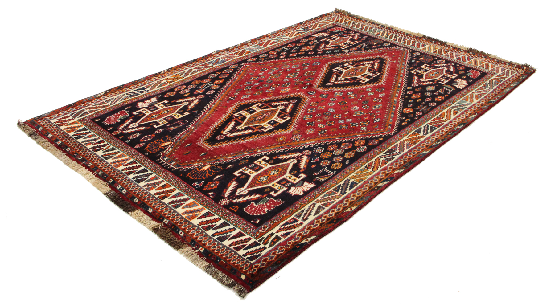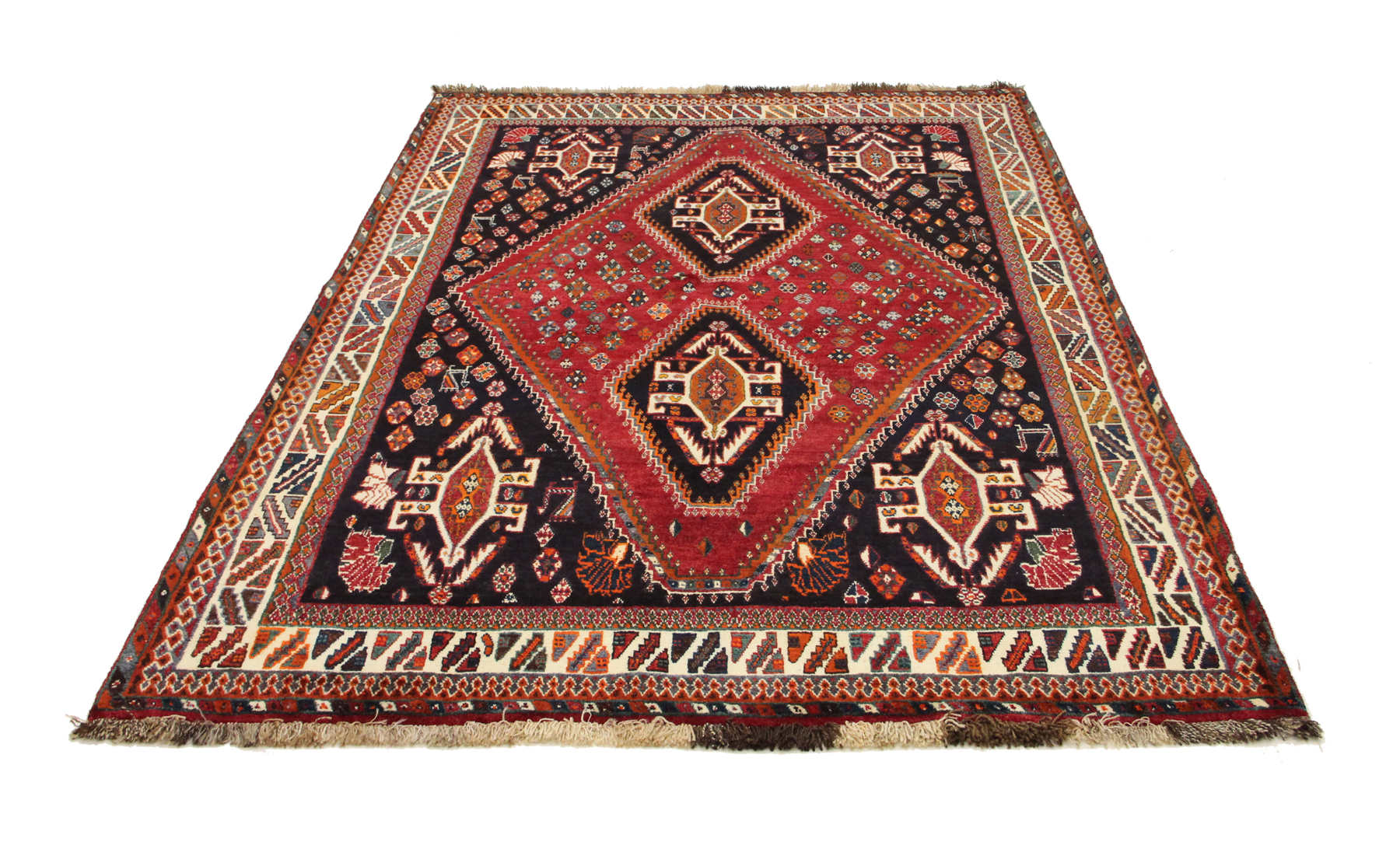 Charakteristisch für Ghashghai-Shiraz-Teppiche sind ihre lebendigen Farben, oft dominiert von Rottönen, Blau- und Grüntönen. Die Muster sind oft geometrisch und selbs gedachte spiegeln die natürliche Umgebung sowie Symbole und Motive oder Tiere wider, die tief in der Nomadenkultur verwurzelt sind. Die Handwerkerinnen weben diese Teppiche oft mit viel Liebe zum Detail, was zu einzigartigen und authentischen Kunstwerken führt.