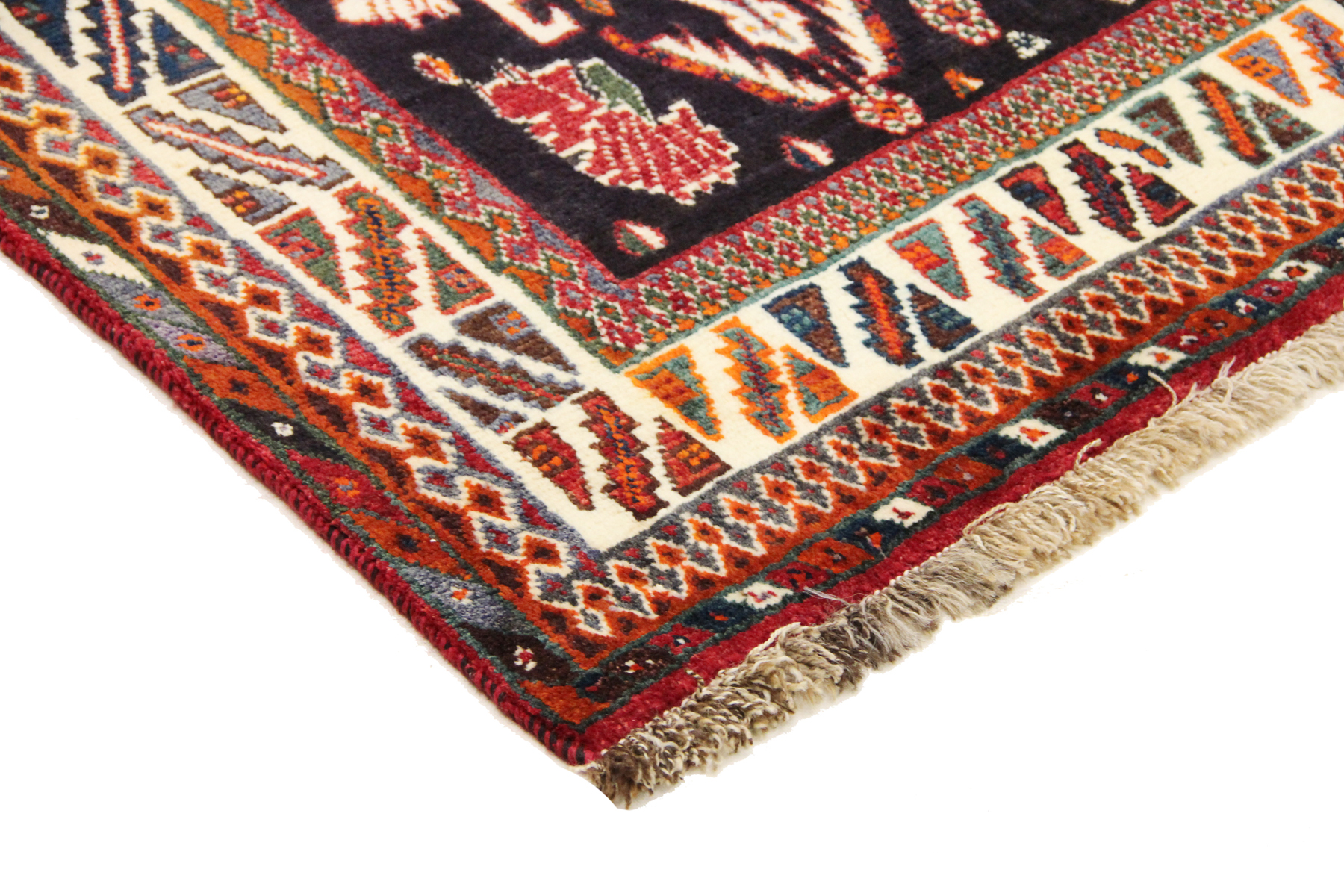 Die Qualität von Ghashghai-Shiraz-Teppichen ist bemerkenswert. Die Wolle, die für diese Teppiche verwendet wird, stammt oft von lokalen Schafen mit Handgesponnene Wolle, und die traditionelle Herstellungstechnik sorgt für Langlebigkeit und Beständigkeit. Die Knoten per Quadratzoll sind ein Indikator für die Feinheit des Teppichs, wobei höhere Zahlen auf aufwändigere und detailliertere Muster hinweisen.