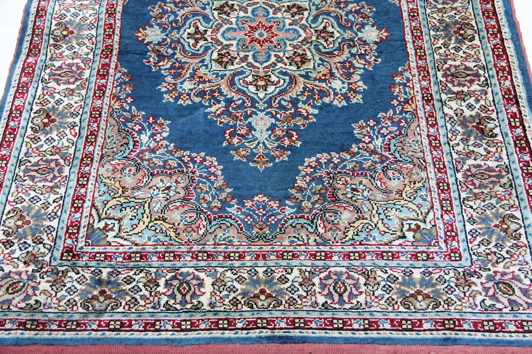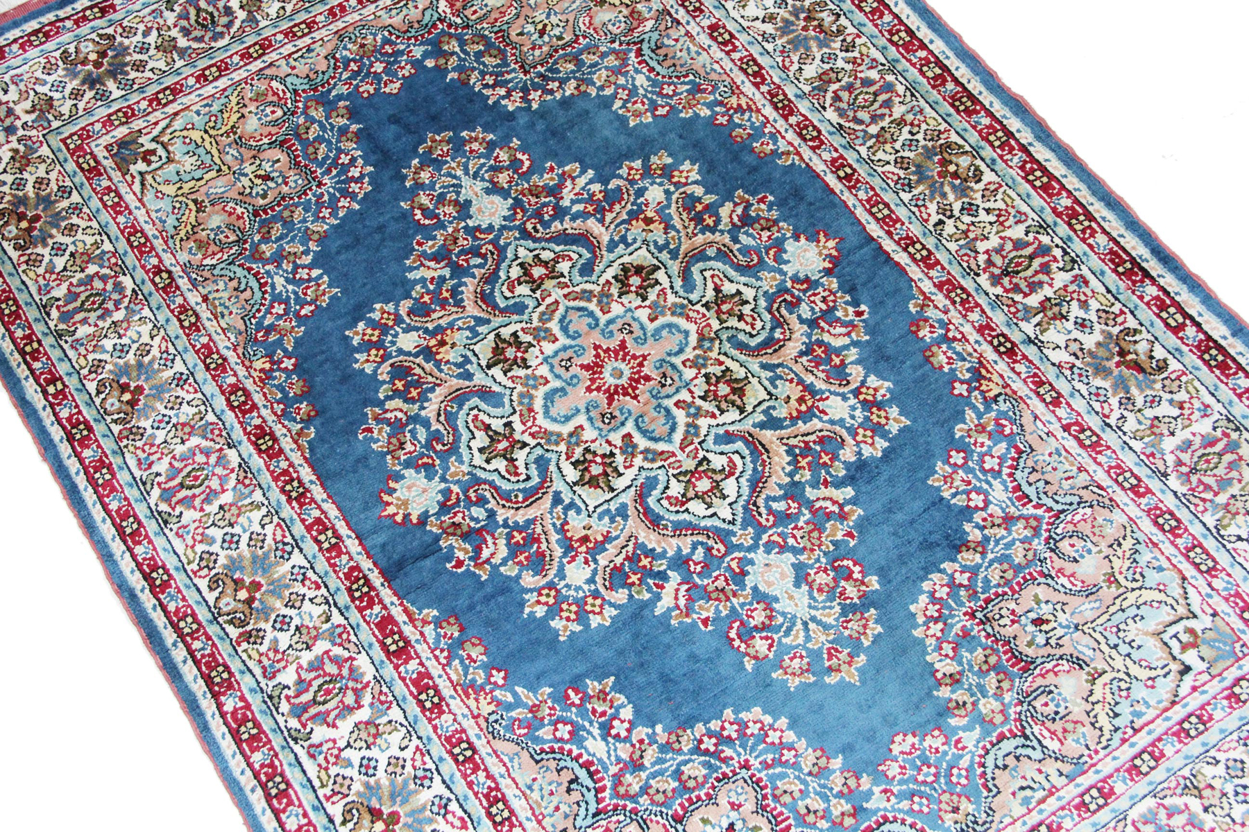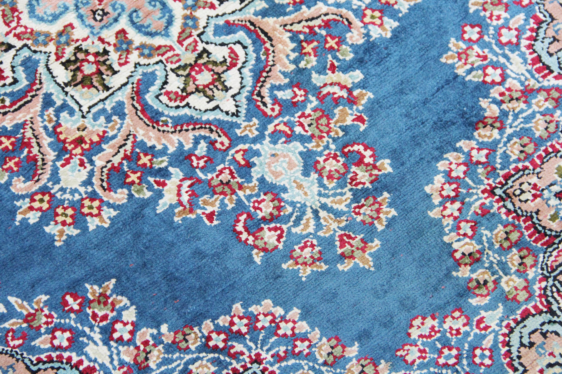 Türkischer Kayseri Teppich Anatoli & Traditionelle Design Nr 25069| Ein sehr schöner Teppich, hergestellt in der Türkei, mit einem Blauefarbenen und Türkis Hintergrund mit regelmäßigen Blumen und einem Beige Rand
